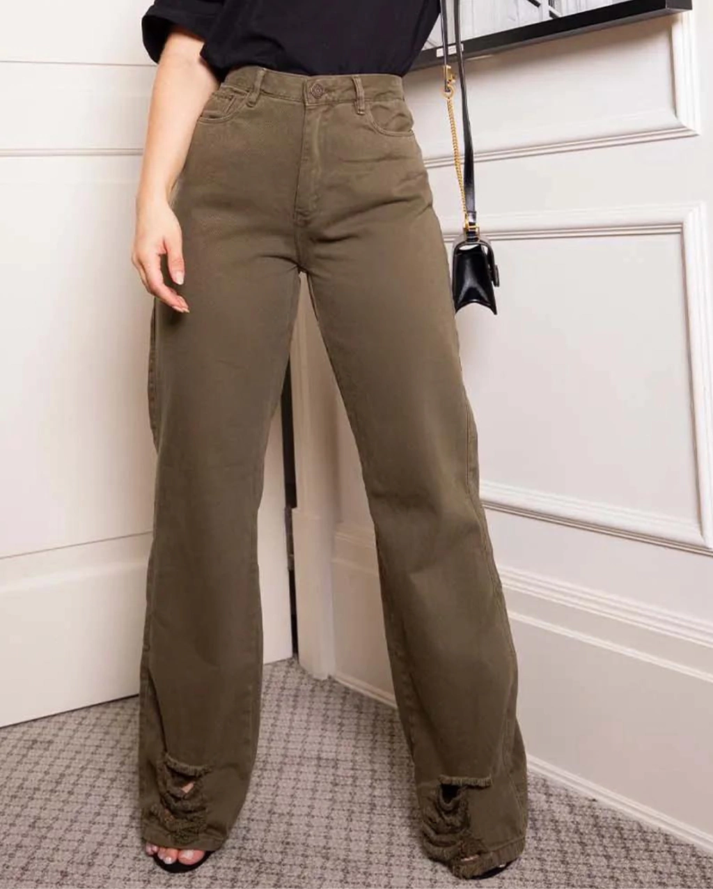 Detalhes: Fechamento Por Botão e Ziper , Cintura Ajustada e Caimento Amplo Estilo Pantalona.