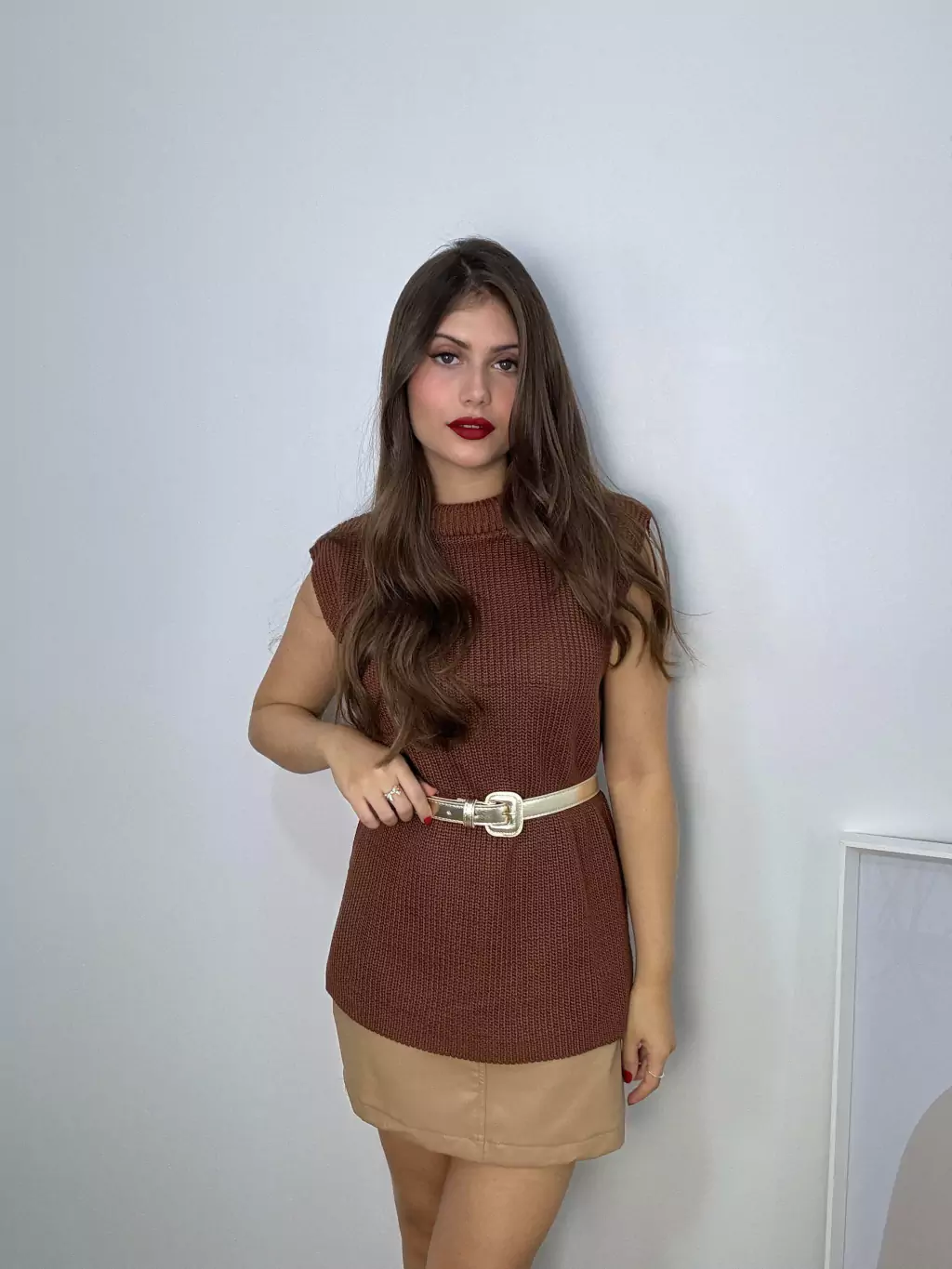 Pode ser usado sozinho, ou sobreposto com camisa.