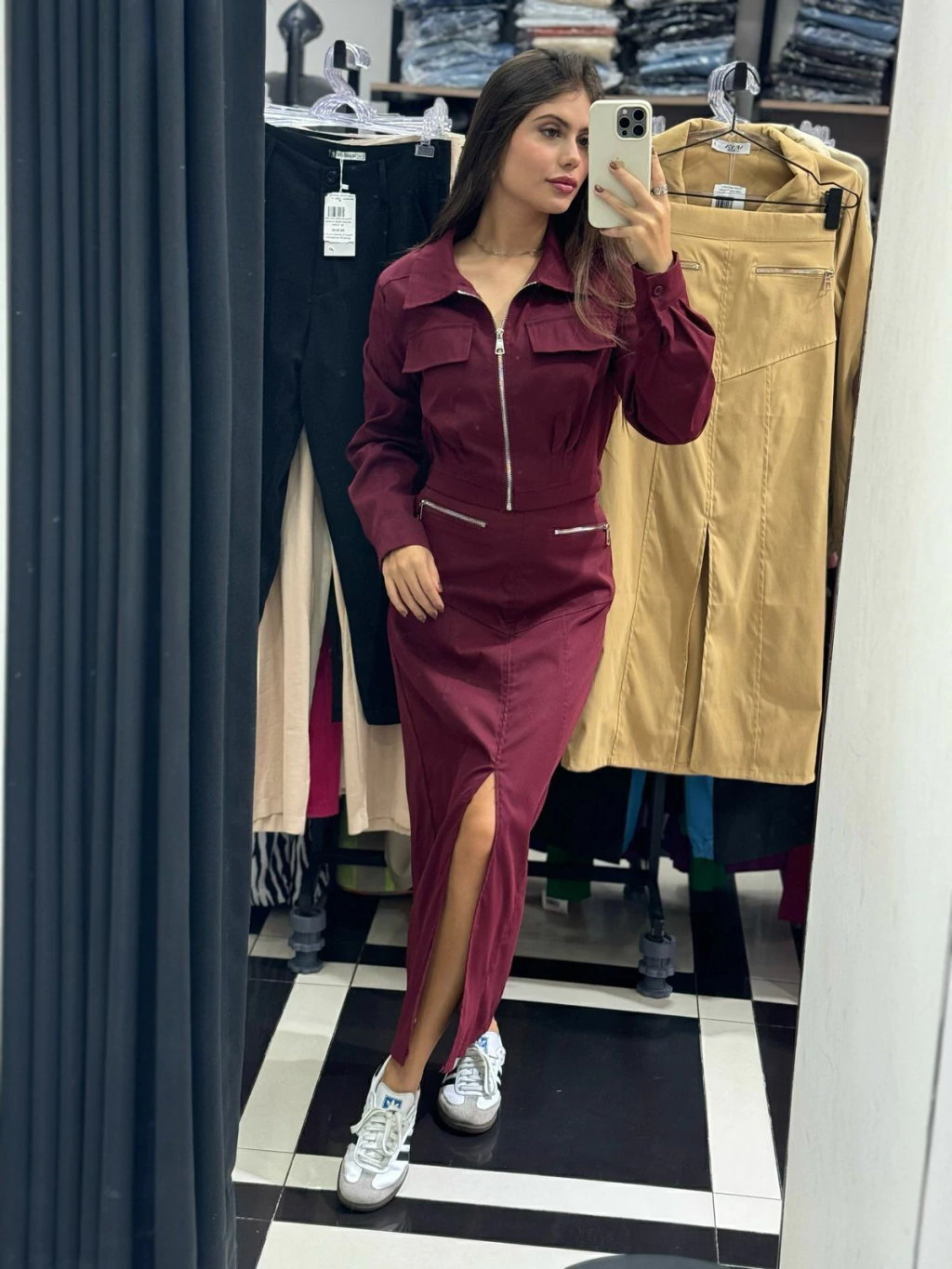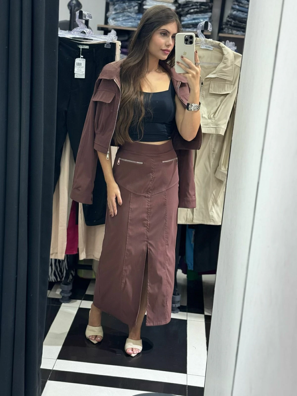 Acompanha a saia midi + jaqueta