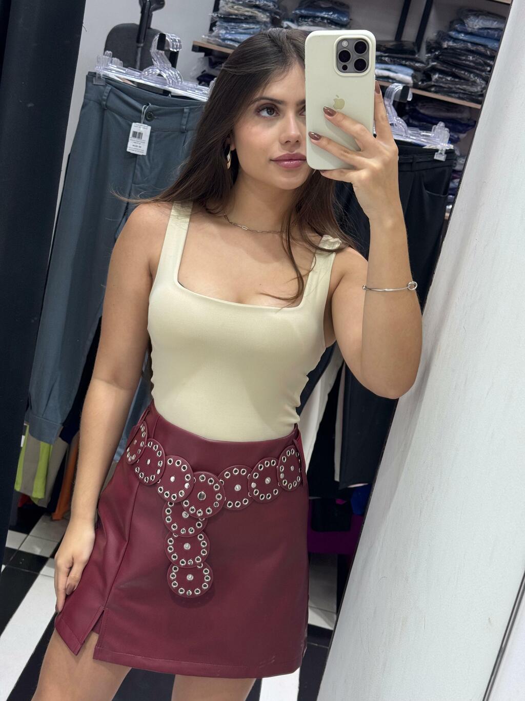 Short saia em couro PU